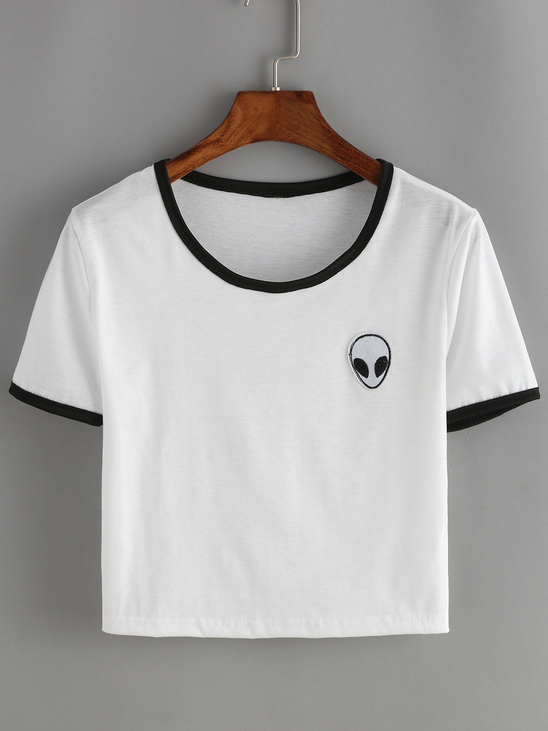A cosmic classic with an edge. This cropped tee keeps it simple with a small embroidered alien head on the chest—minimalist, weird, and ready to pair with high-waist everything.